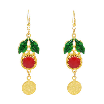 Pendientes colgantes de fruta de hoja de moneda de nuevo estilo fresco, Pendientes colgantes de anzuelo de diseño de gota de esmalte de doble Color dorado y plateado
