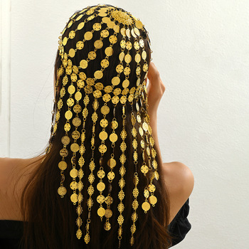 Bohemio étnico aleación borla Mujer cabeza gorra Moneda de Oro tallado cabeza cadena sombrero joyería para el cabello