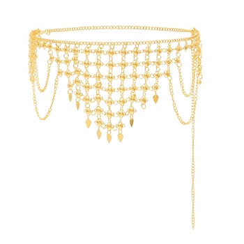 Cadena de cintura chapada en oro de estilo antiguo, joyería de cuerpo de borla multicapa Retro, aleación de estilo étnico, aniversarios de danza del vientre