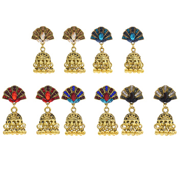 Hint Jhumka küpe etnik Vintage altın alaşım Women Rhinestone çan Dangle küpe boncuk püskül kadınlar için