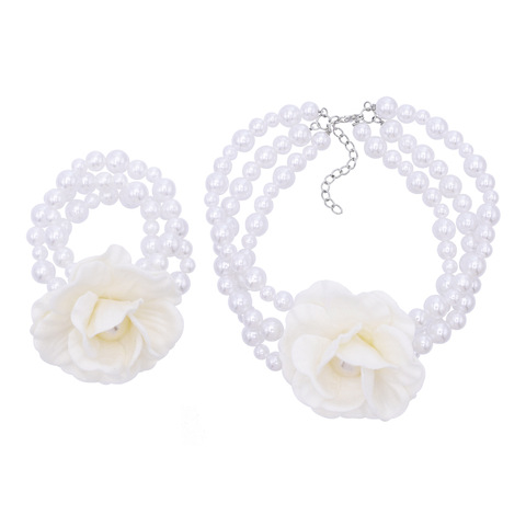 模造真珠チェーン花ネックレスブレスレットセットフランスレトロ花柄ネックレスブレスレットジュエリーセット