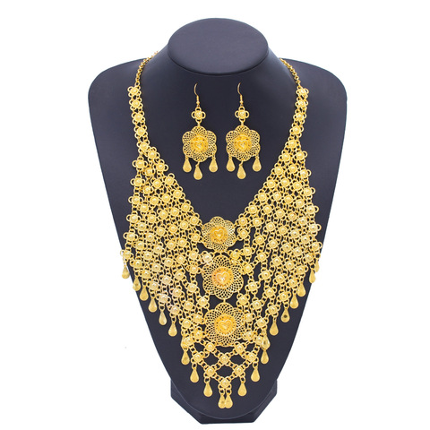 金メッキ合金ジュエリーセット中東中空花ネックレス中央アジア花ハートチョーカーイヤリングセット