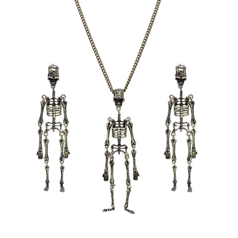 ヨーロッパハロウィーンゴシックスケルトンペンダントネックレスイヤリングセット面白いビッグスカル合金クロスボーダージュエリーセット